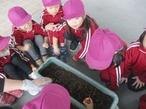 今日は年少さんがチューリップの球根を植えました。