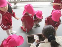 今日は年少さんがチューリップの球根を植えました。